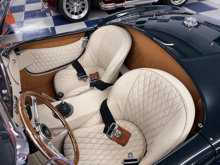 Underpinning the true to form body is an accurate Tojeiro style tubular chassis with transverse mounted leaf springs, Bilstein custom shocks, rack & pinion steering, and power assisted Wilwood 4-piston disc brakes.