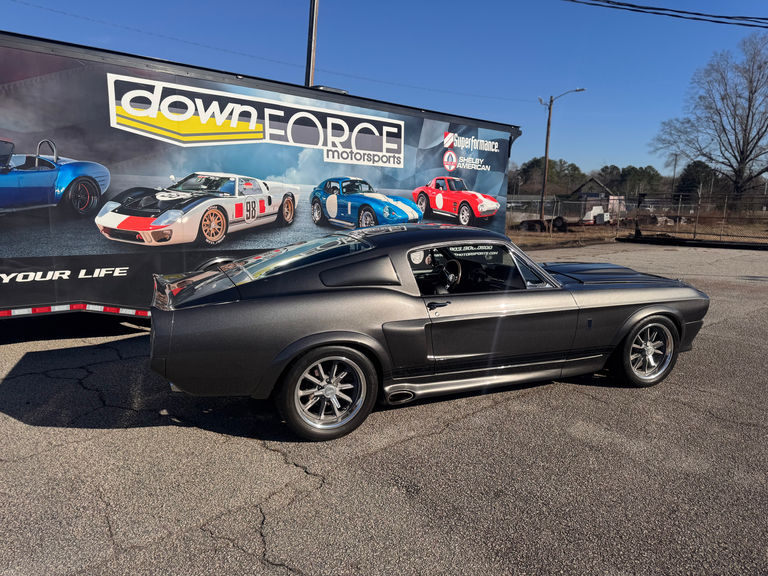 Under 700 miles on this incredible build since compoletetion and is powered by a 428 cui V8 and backed by a Top Loader 4-speed manual transmission. The body of finished in Pepper Grey Metallic and set off by twin metallic stripes. Movie correct body complete with side exit exhaust. Rolling stock is a set of 17" wheels wrapped with Bf Goodrich tires.