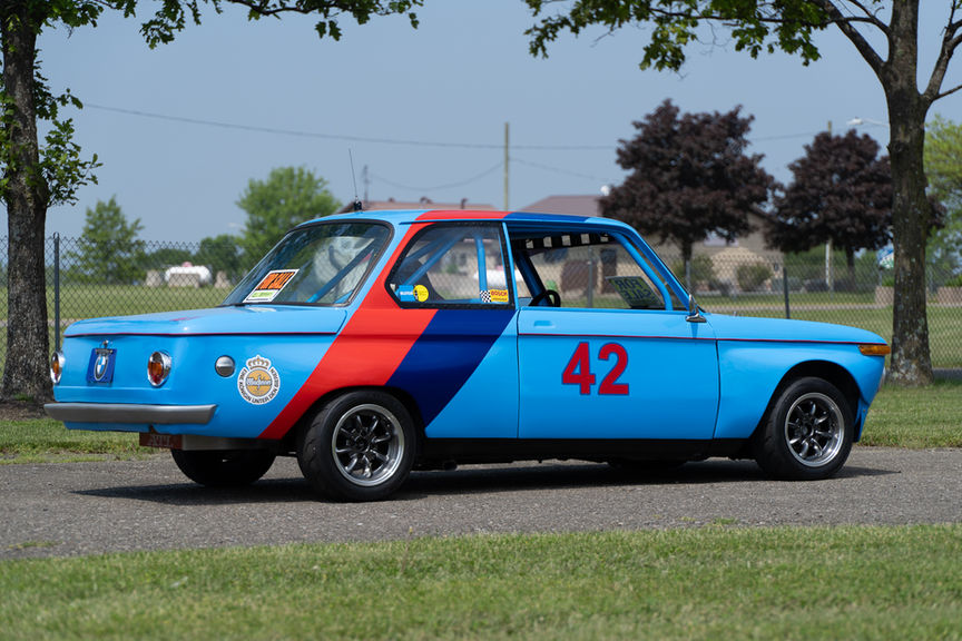 Completed sorted and ready to race '71 BMW 2002 Tii vintage race car, this car has a log book and service/setup records going back years. Equipped with all of the safety gear you need, a cool shirt setup, and radio gear to get on-track immediately. The dual Weber carb fed M50 made 131 HP in a mostly stock configuration running through a 5-speed transmission that had a full rebuild in 2023. Rolling on a set of minilite wheels and adjustable suspension, with brakes upgraded for racing round out this build.